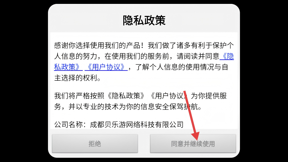 1、在隐私政策弹窗中,点击【同意并继续使用】按钮,继续使用应用。
