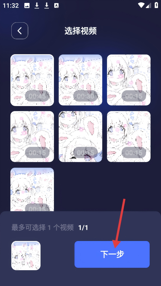 3、在选择视频页面,选择要转换的视频后,点击【下一步】按钮,进入格式转换设置页面。