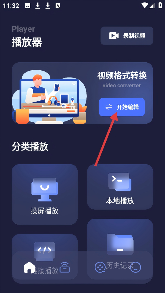 2、在播放器页面,点击【开始编辑】按钮,进入视频格式转换流程。