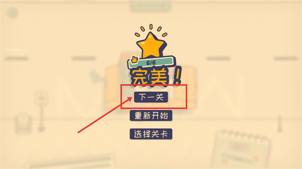 4、关卡完成后看到【完美】提示,点击【下一关】按钮,就能进入新的关卡继续挑战哦。