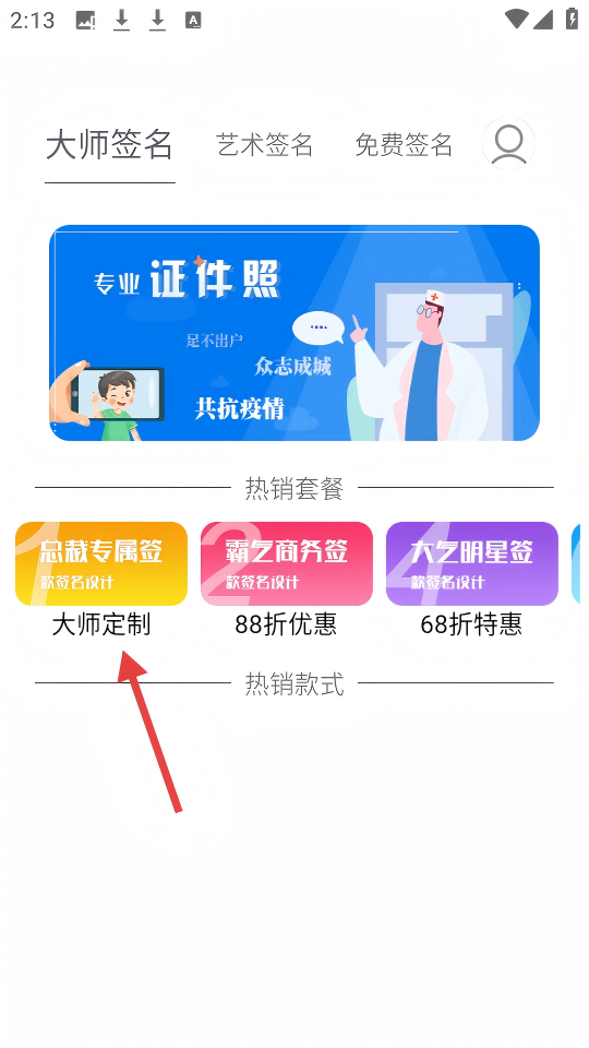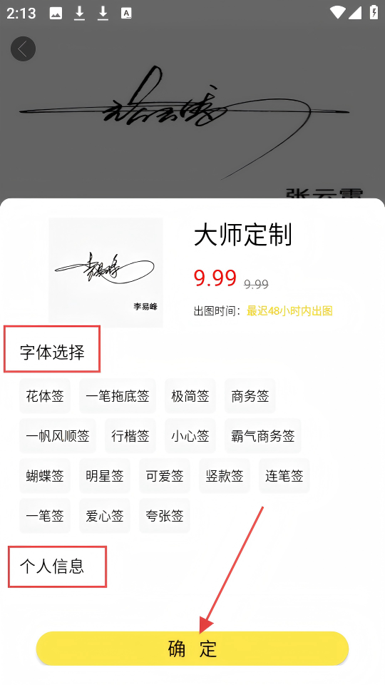 1、点击【大师定制】,进入大师定制签名页面。