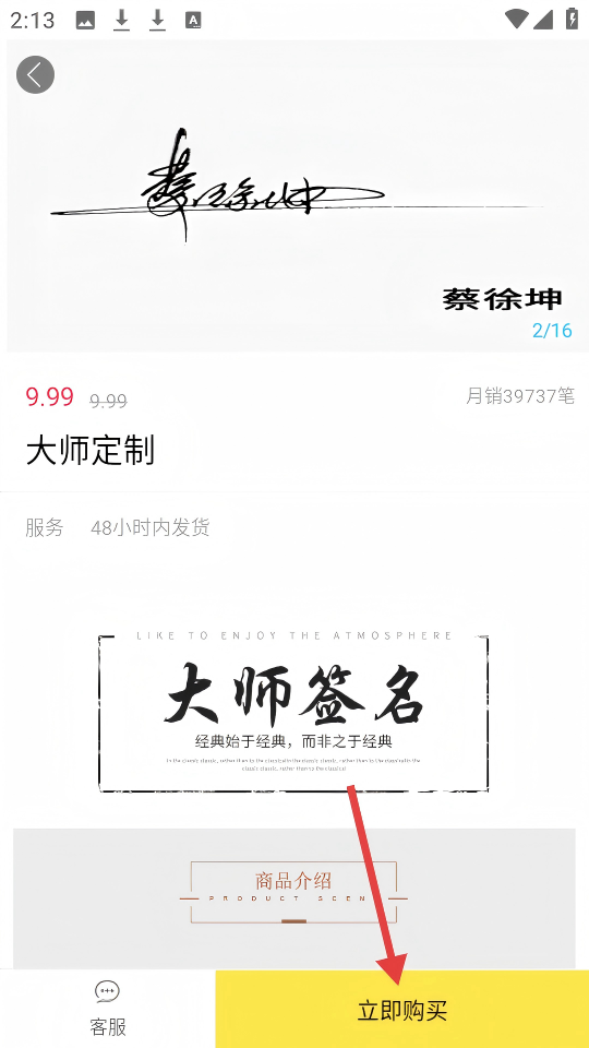 2、在大师定制签名页面,点击【立即购买】。