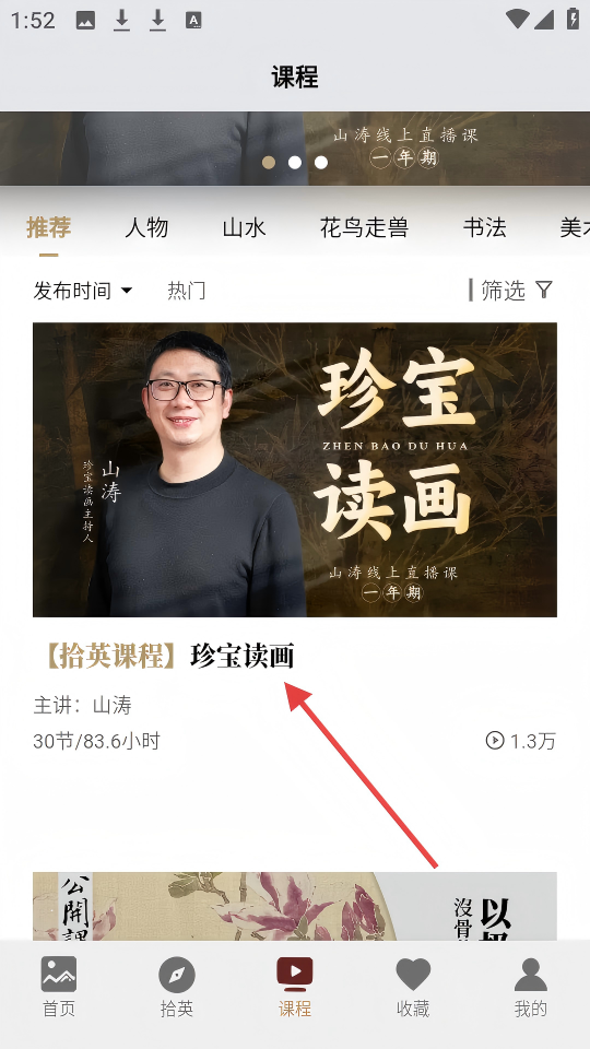 2、在课程页面,点击【珍宝读画】课程,进入课程详情页。