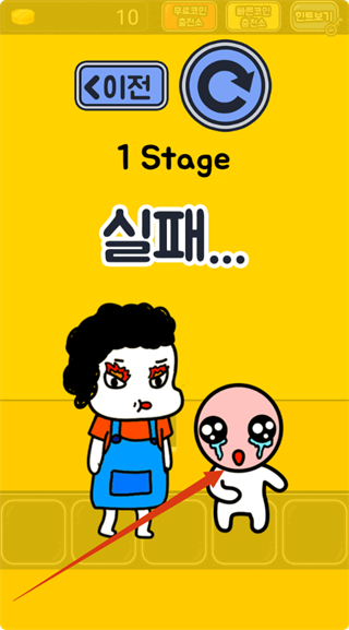 4、若出现【실패…】提示,可点击刷新按钮重新开始,总结失败原因,调整策略再战。