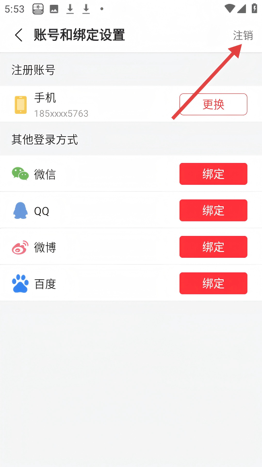 4、在账号和绑定设置页面,点击【注销】,进入账号注销流程。