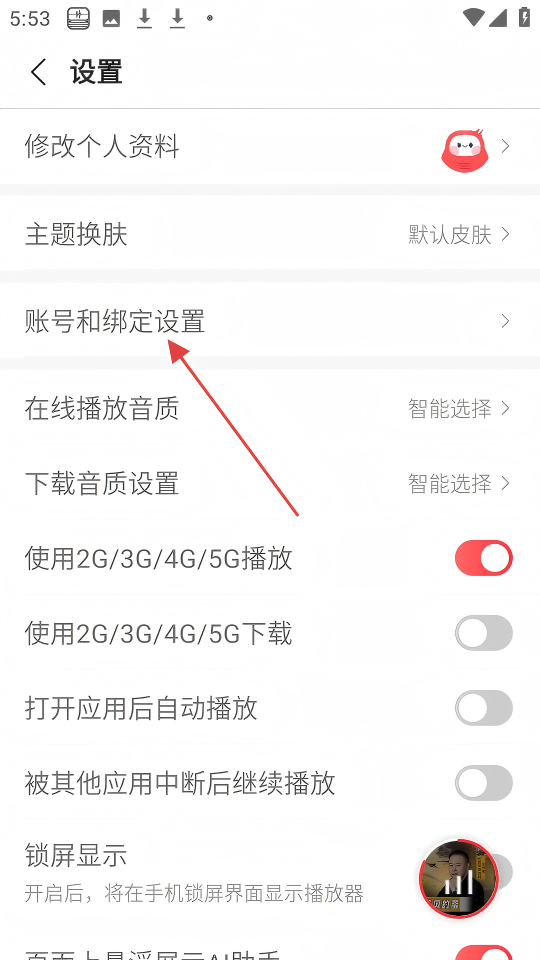 3、在设置页面,点击【账号和绑定设置】,进入账号和绑定设置页面。