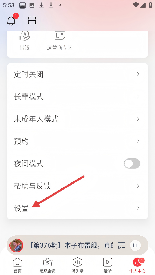 2、在个人中心页面,点击【设置】,进入设置页面。