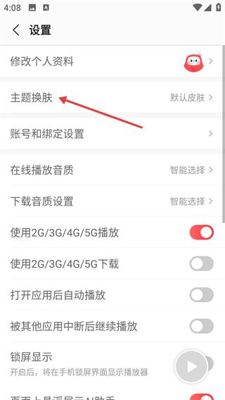 3、在设置界面的选项列表里,找到主题换肤选项并点击进入对应页面。