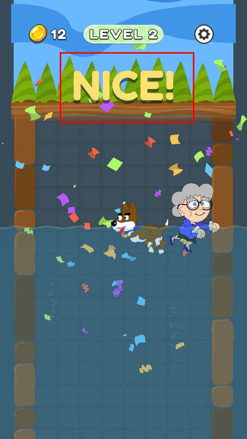 3、成功搭建路径,帮助角色向上移动,即可通关,屏幕会显示“NICE!”等通关提示。