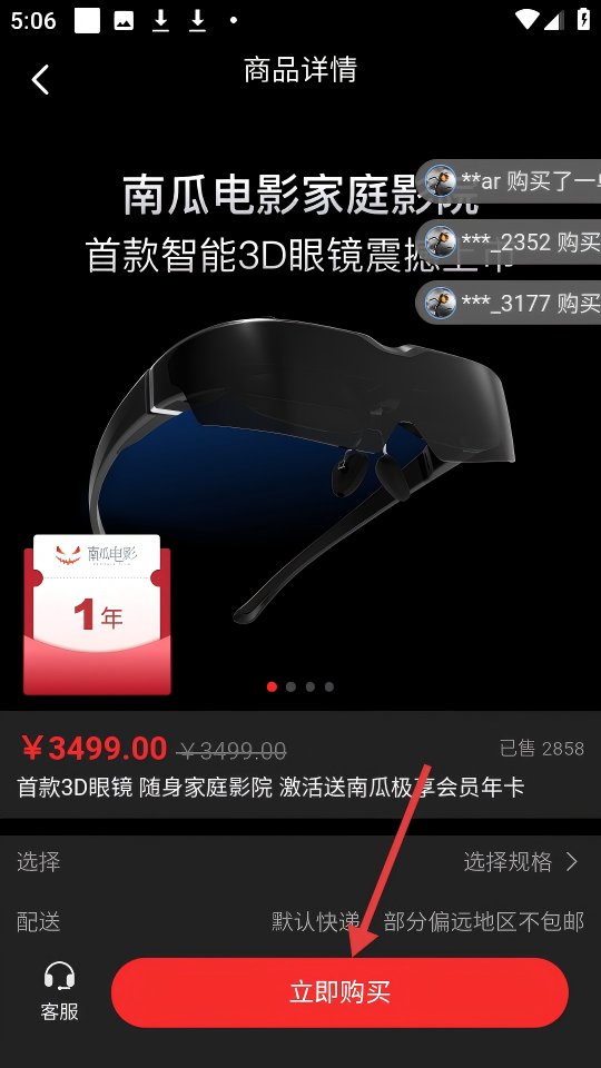 4、在商品详情页,点击【立即购买】,进入购买流程。