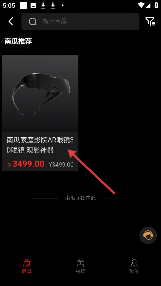3、在商城页面,点击【南瓜家庭影院AR眼镜3D眼镜观影神器】商品卡片,进入商品详情页。