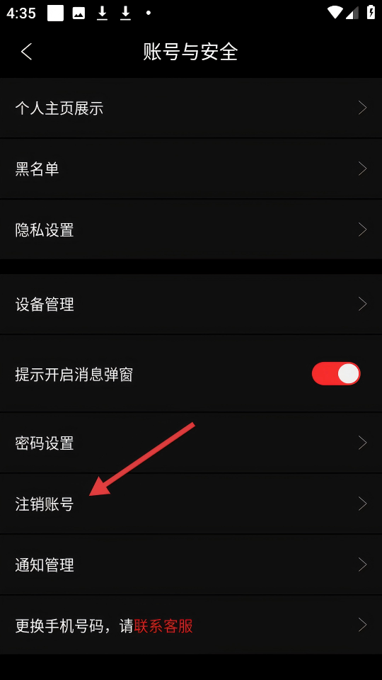 4、在【账号与安全】页面,点击【注销账号】,进入账号注销流程。