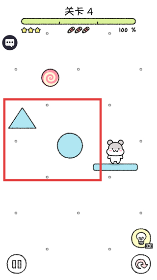 2、在【关卡4】中,观察场景内的【三角形】与【圆形】元素,规划路径让宠物靠近目标道具。