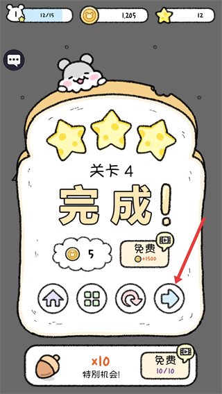 4、【关卡4】完成后,可获得奖励,点击界面中的箭头按钮,即可进入下一个关卡继续挑战。