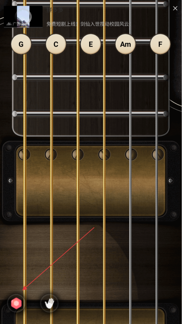 1、在吉他弹奏界面,点击【左下角音符样式的按钮】,进入设置页面。