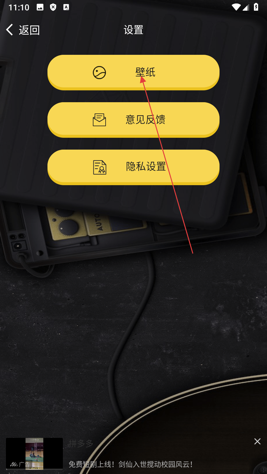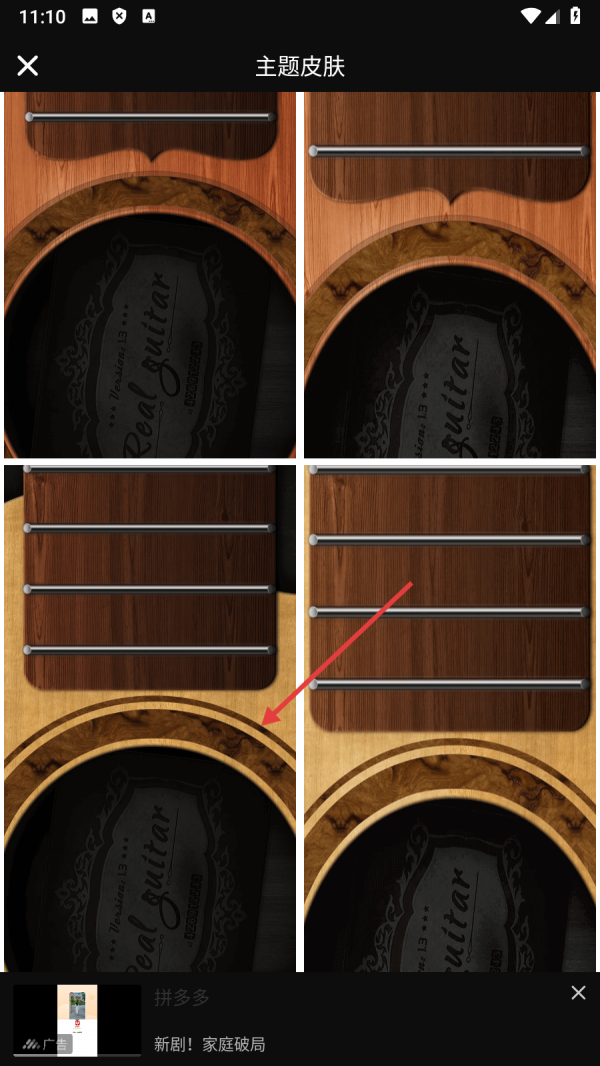 4、皮肤更换完成后,回到吉他弹奏界面即可【呈现所选主题】完成壁纸更换。
