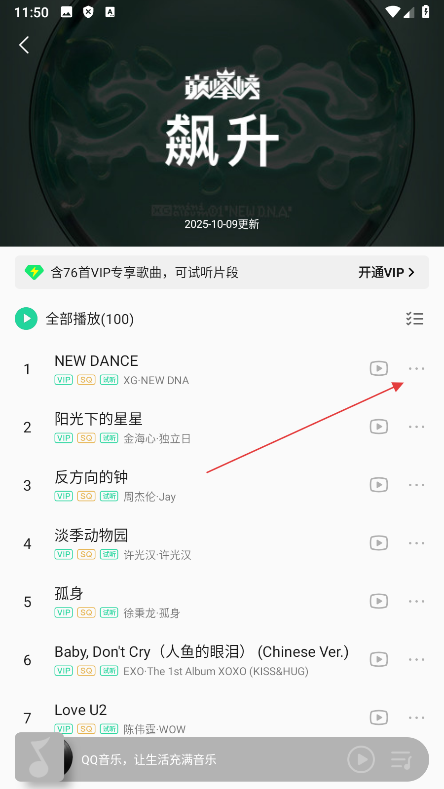 3、在飙升榜歌曲列表中,点击【目标歌曲右侧的三点】,弹出歌曲操作菜单。