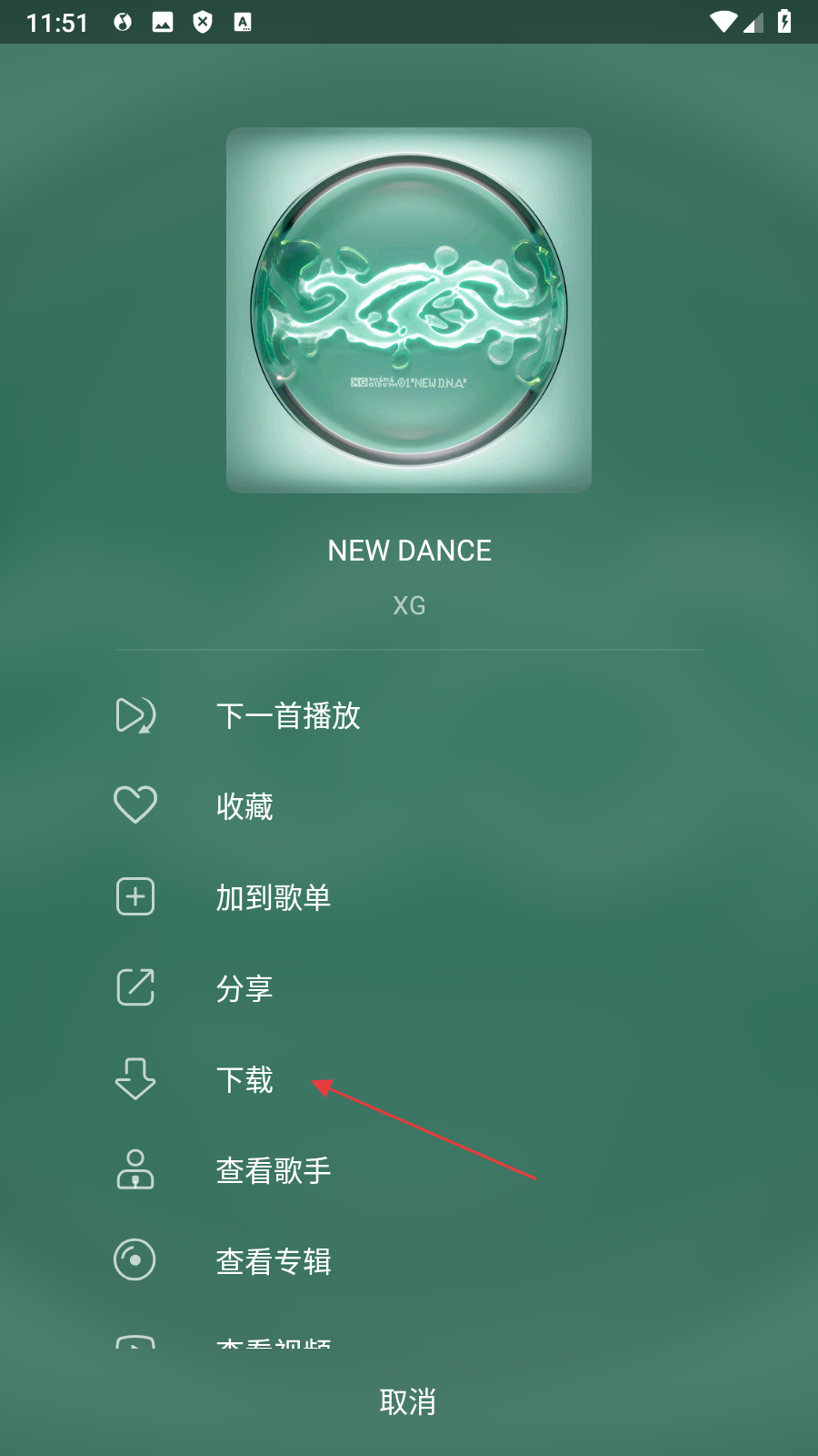 4、在歌曲操作菜单里,点击【下载】,即可开始下载该歌曲。