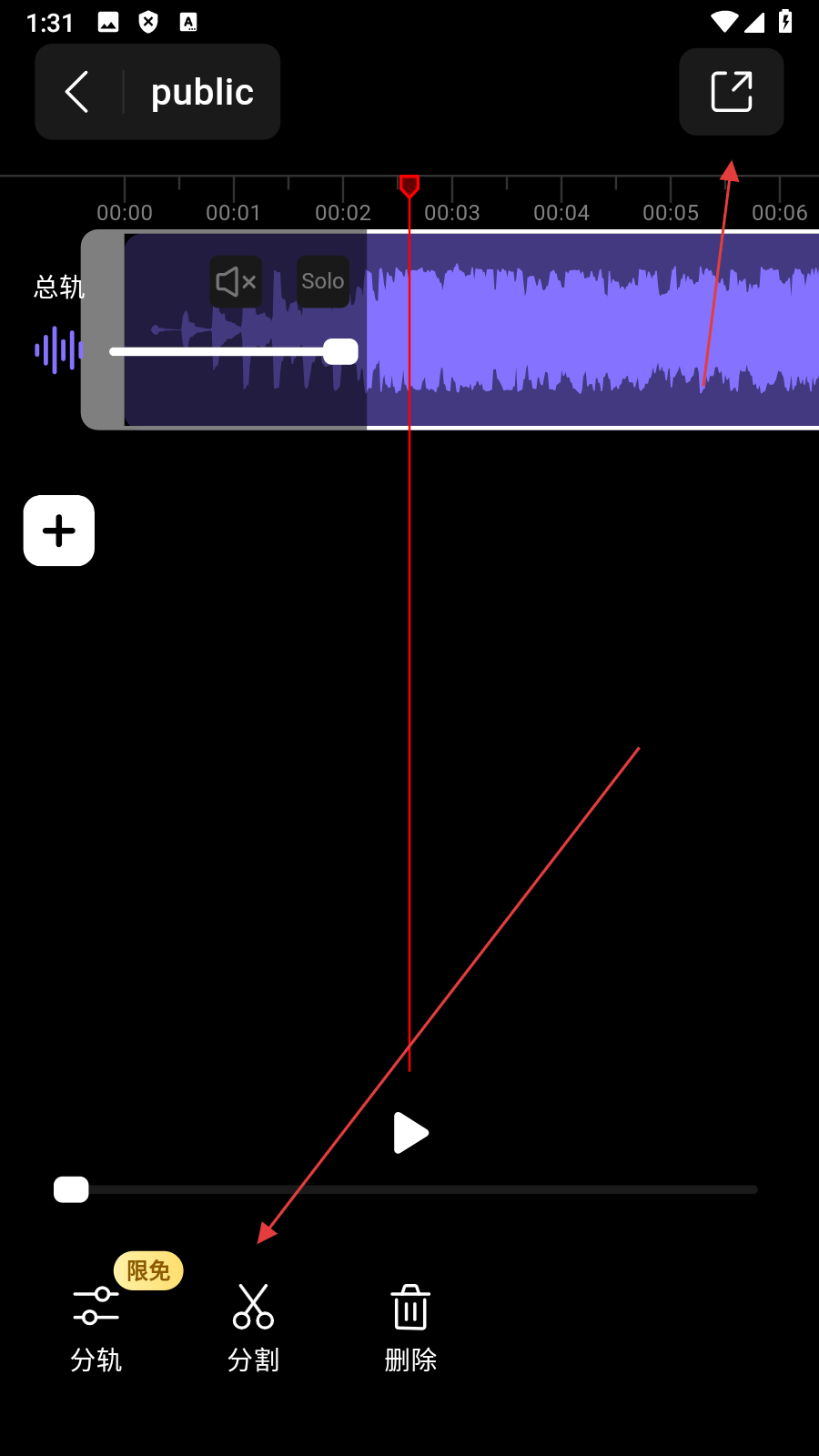 4、在音频编辑界面,可使用【下方功能】编辑音频,点击【右上角分享图标】即可保存音频。