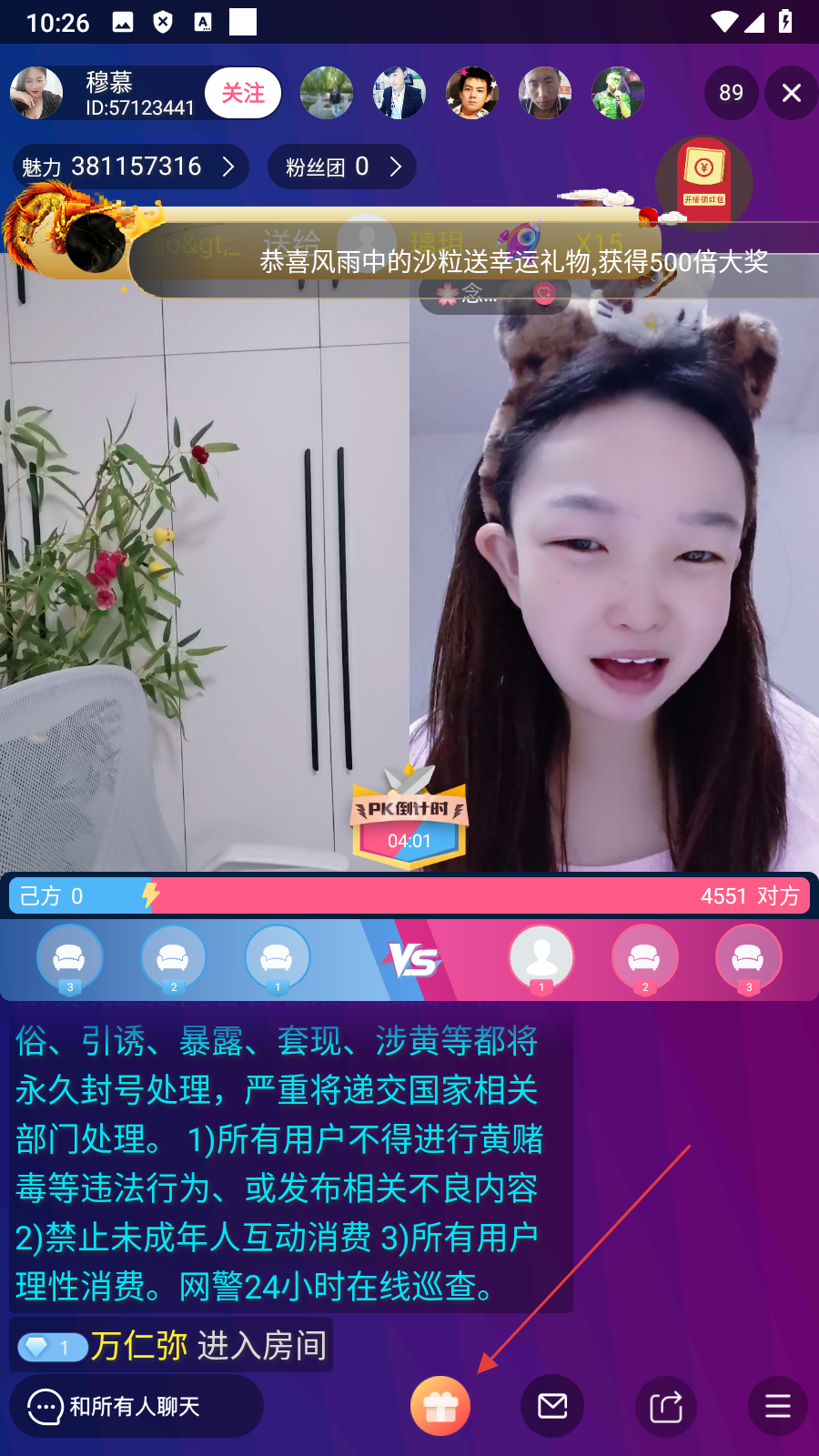 2、在直播间界面,点击【底部礼物图标】,弹出礼物选择面板。