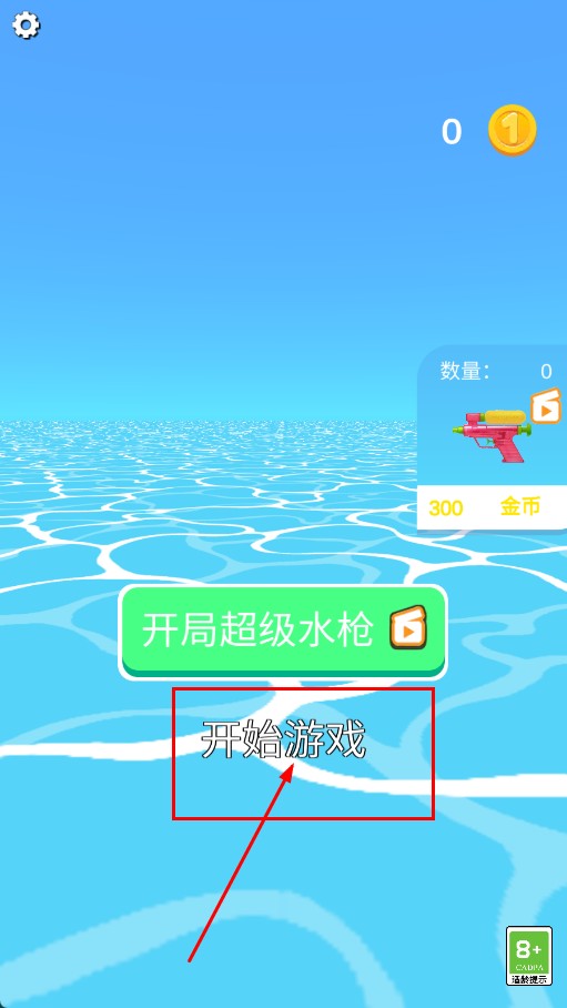 1、点击【开始游戏】按钮,进入水上枪战乐园游戏关卡。