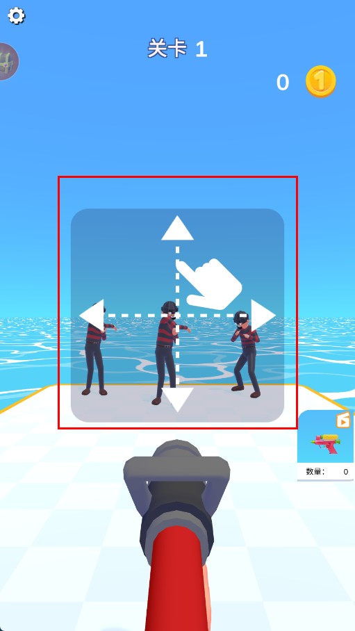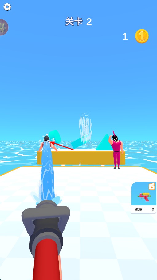 2、通过滑动屏幕,控制水枪射击方向,瞄准目标人物。