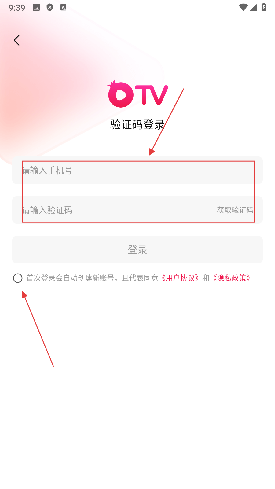 3、在验证码登录界面,【勾选协议,输入手机号码和验证码】。