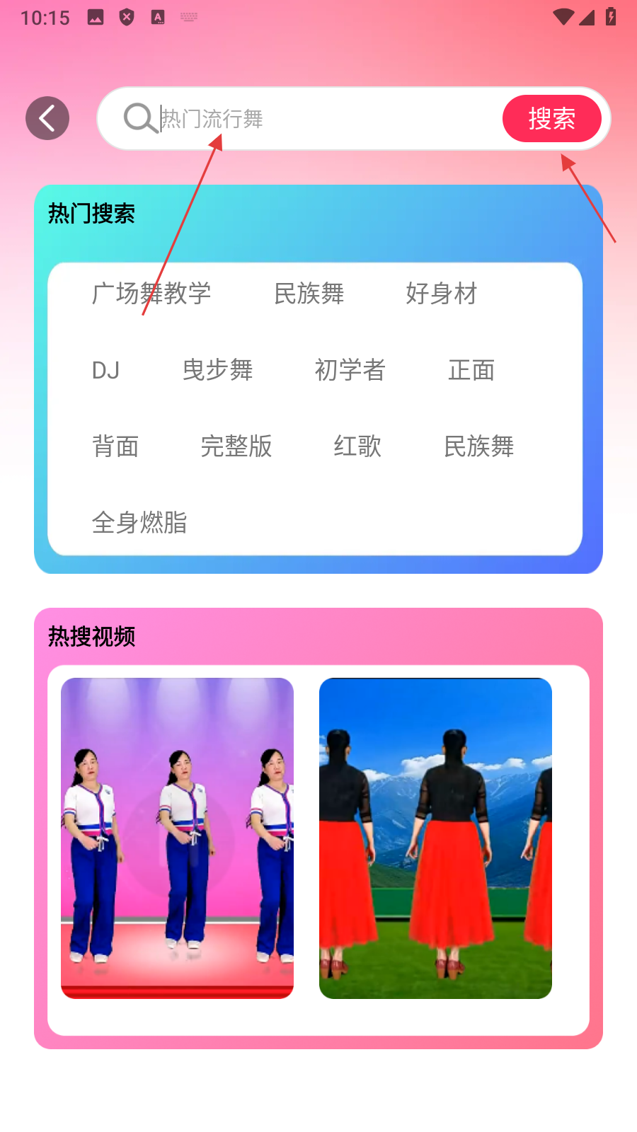 3、在搜索界面,输入【关键词】后点击【搜索】,获取相关视频。