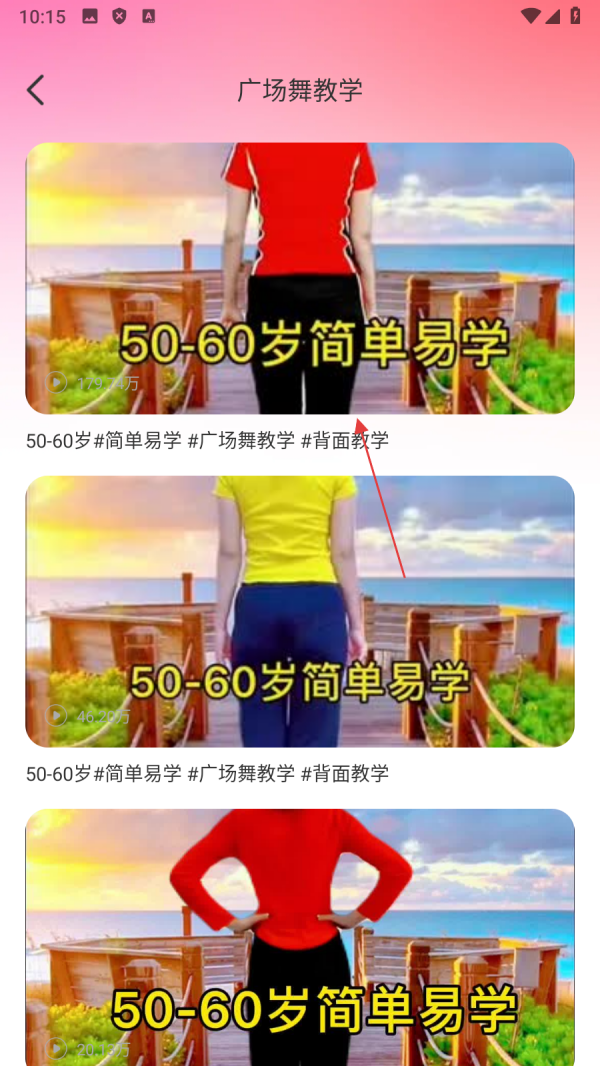 4、在搜索结果页面,点击【心仪的广场舞教学视频】,即可观看学习。