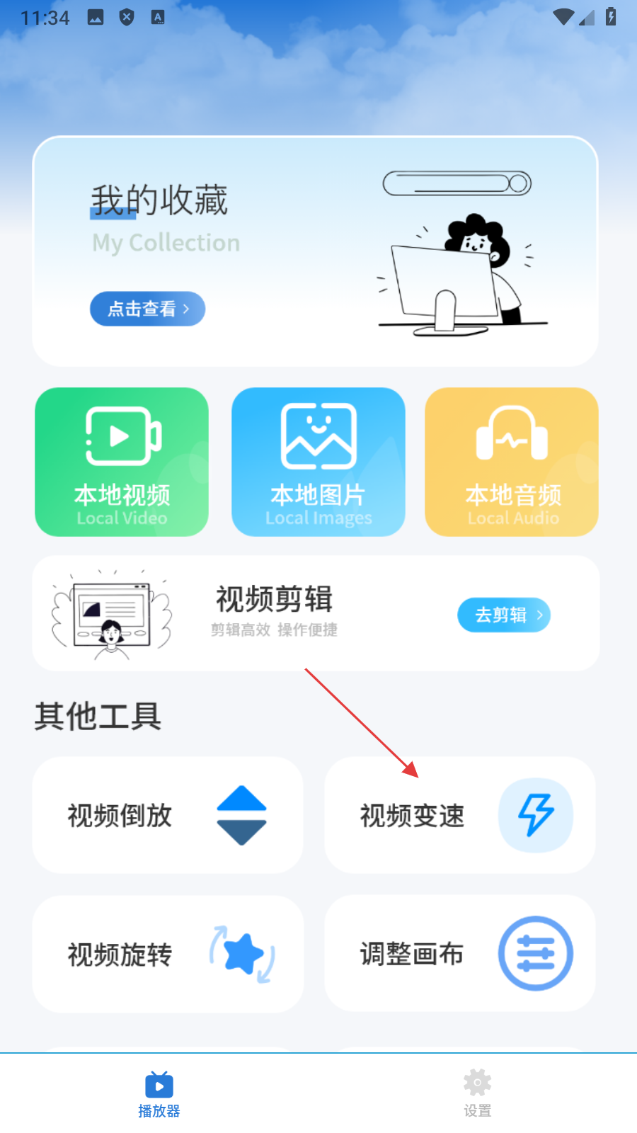 1、在播放器页面,点击【视频变速】,进入选择视频界面。