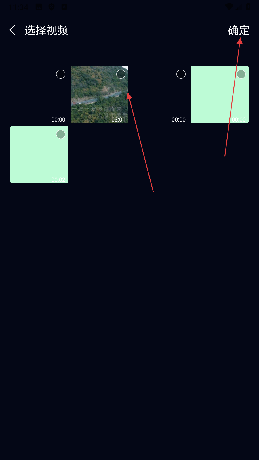 2、在选择视频界面,勾选【心仪的视频】后点击【确定】,进入视频变速界面。