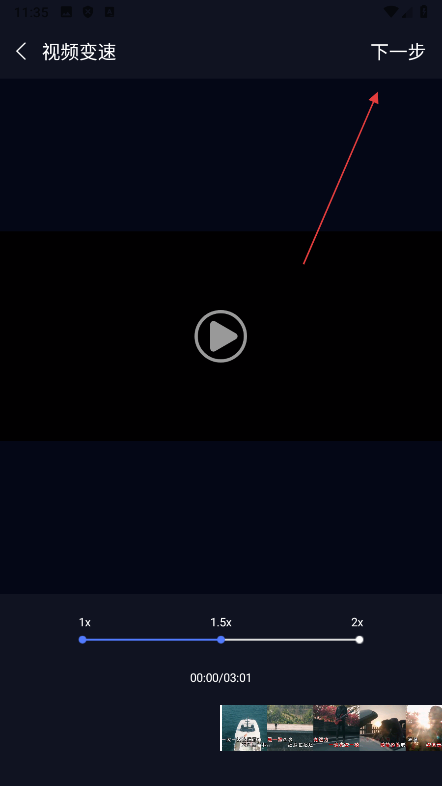3、在视频变速界面,调整好播放速度后点击【下一步】,进入预览界面。