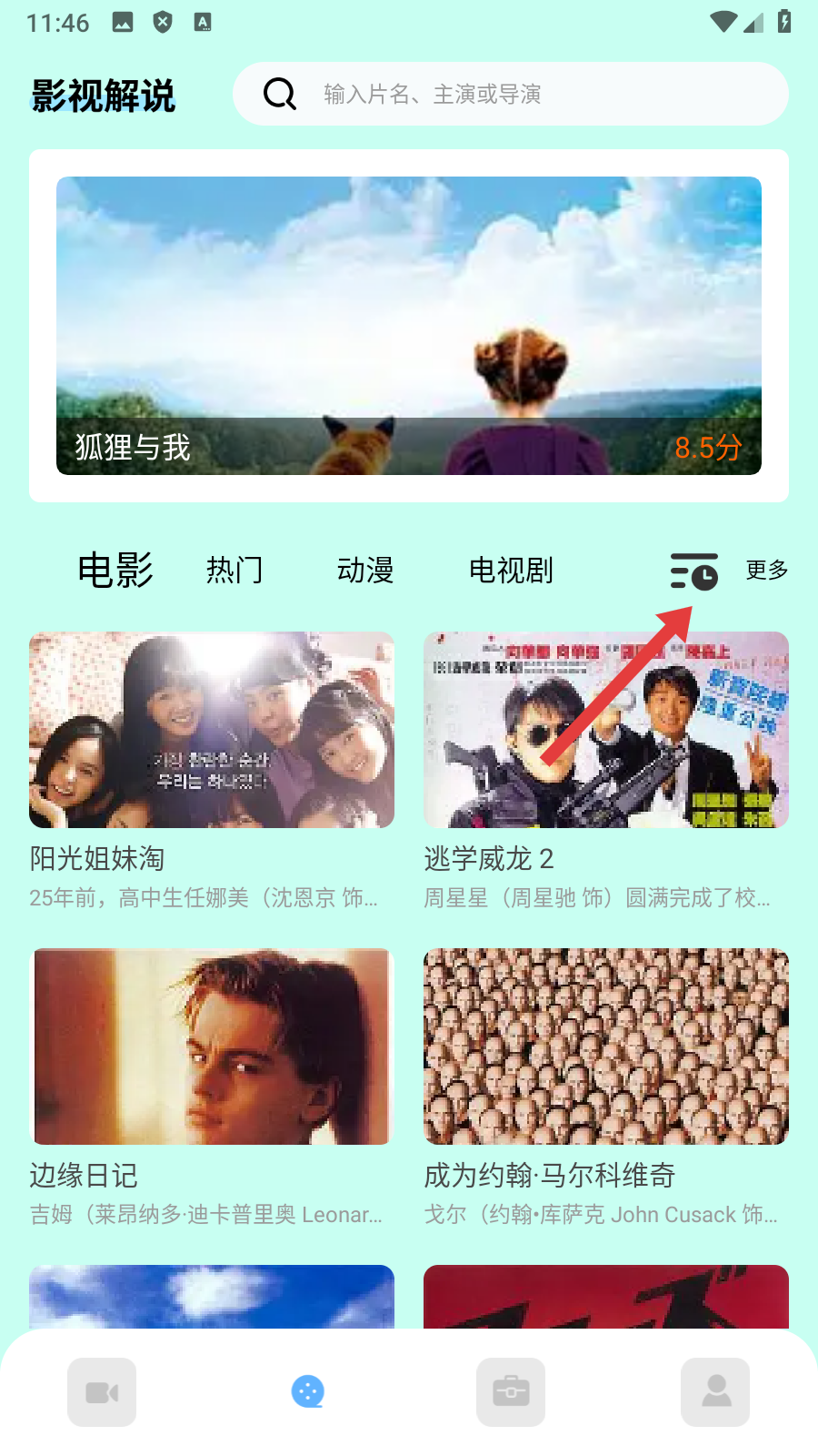 1、在视频播放器页面,点击【底部中间的影视解说图标】,进入影视解说页面。