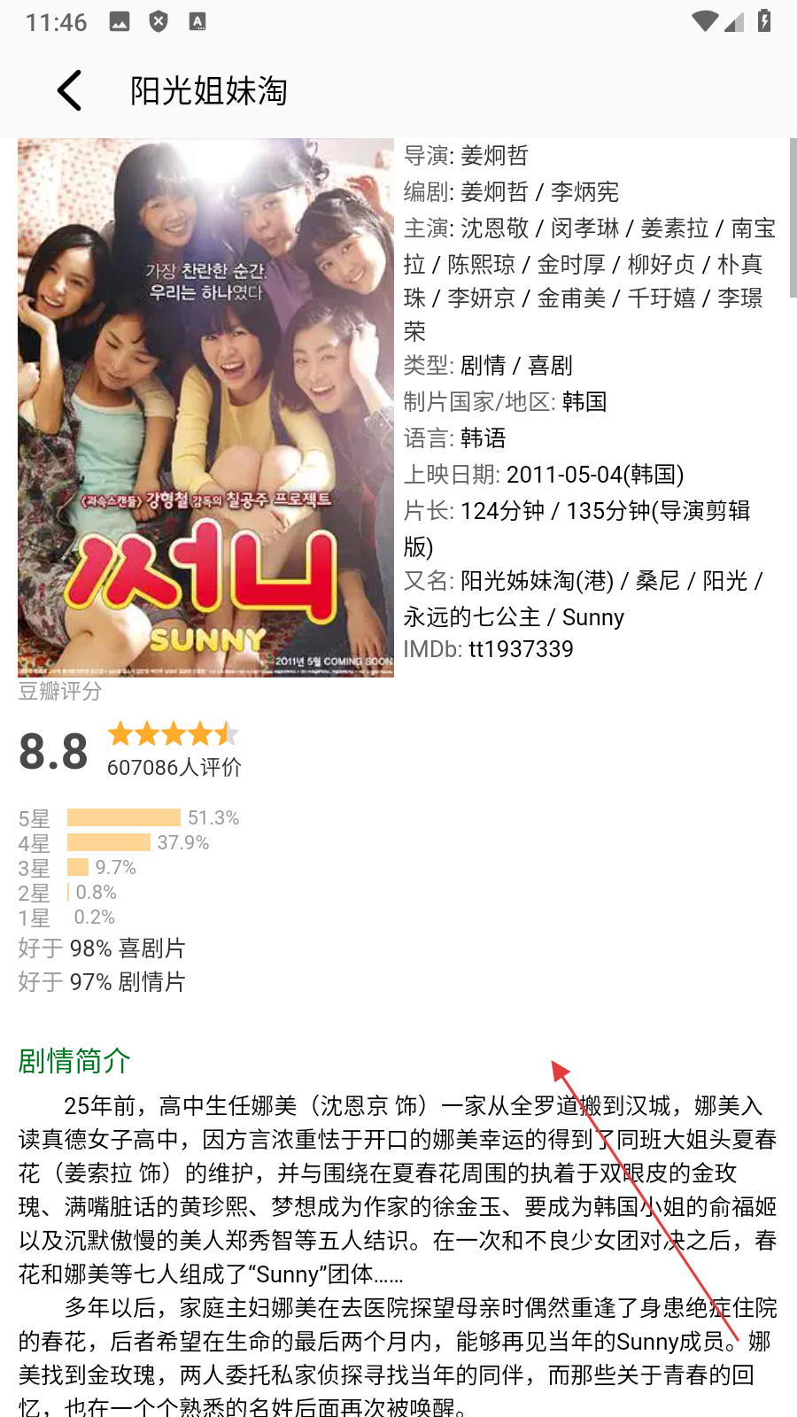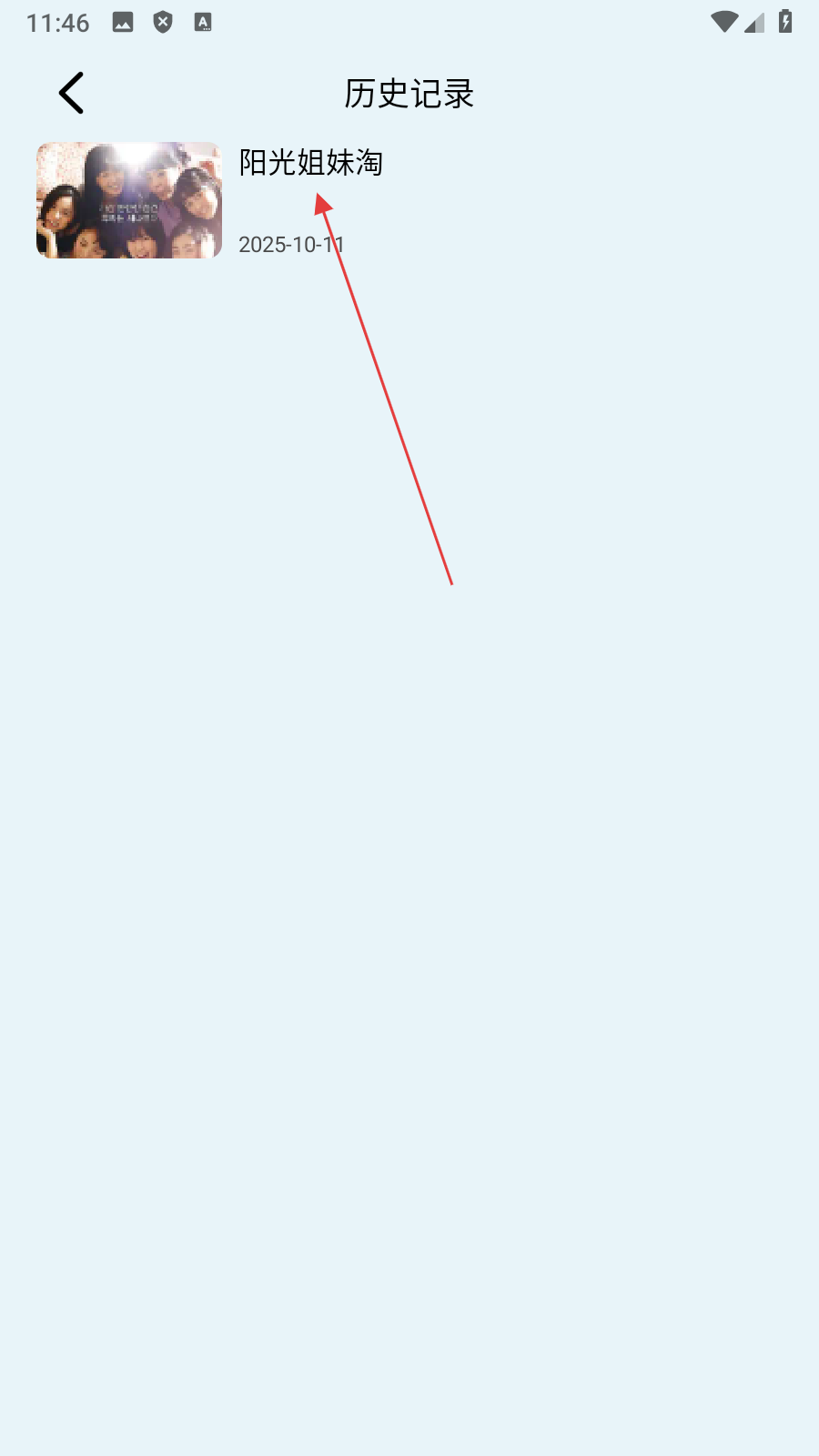 3、在历史记录页面,点击【阳光姐妹淘】,进入影片详情页面。