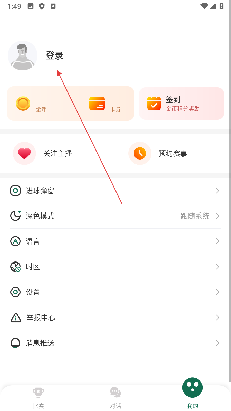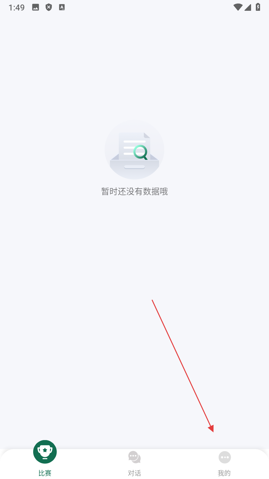 1、在比赛页面,点击底部【我的】,进入个人页面。