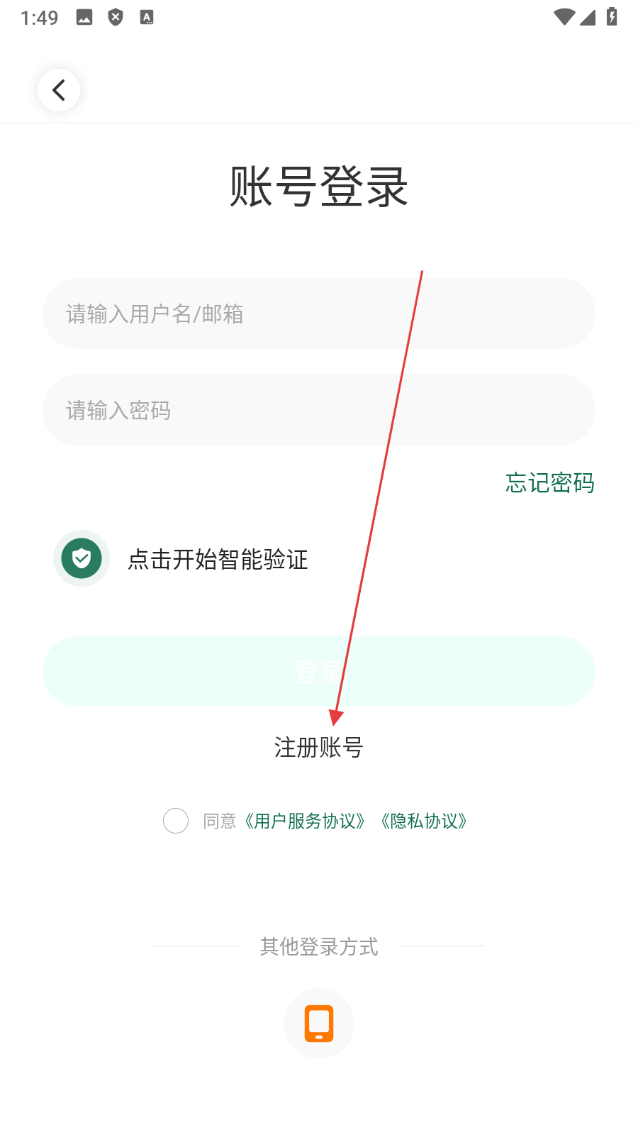 3、在账号登录页面,点击【注册账号】,进入账号注册页面。