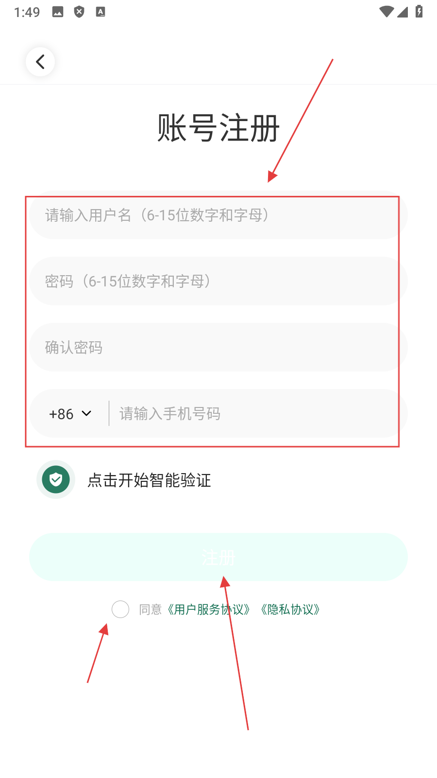 4、填写【信息】,勾选【同意协议】后,点击【注册】,即可完成账号注册操作。