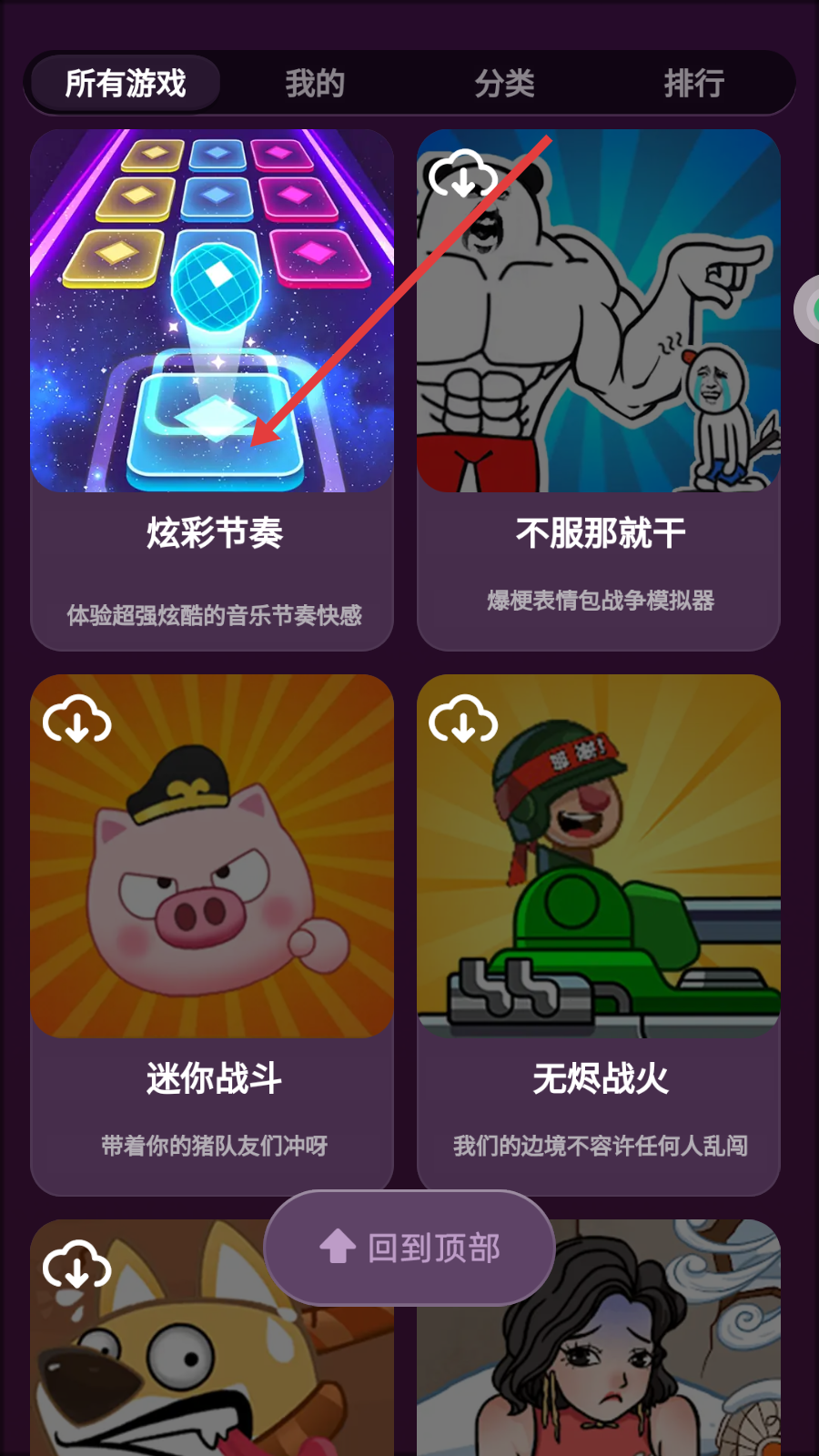 1、在游戏列表中,选择【炫彩节奏】游戏,进入游戏。