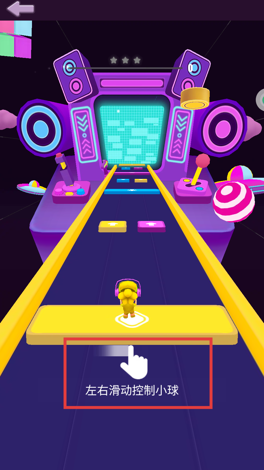 3、在游戏过程中,根据节奏和颜色,让小球落在对应的方块上。