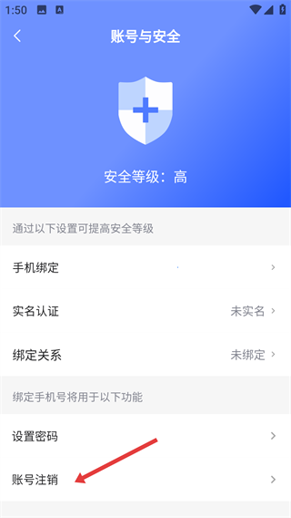 3、进入【账号与安全】页后,找到【账号注销】入口,点击它就到了注销申请环节哦。