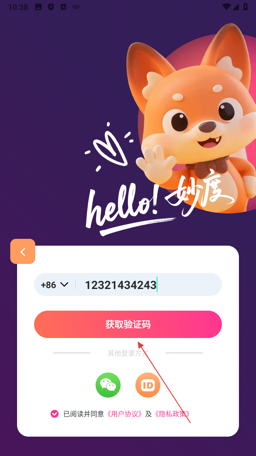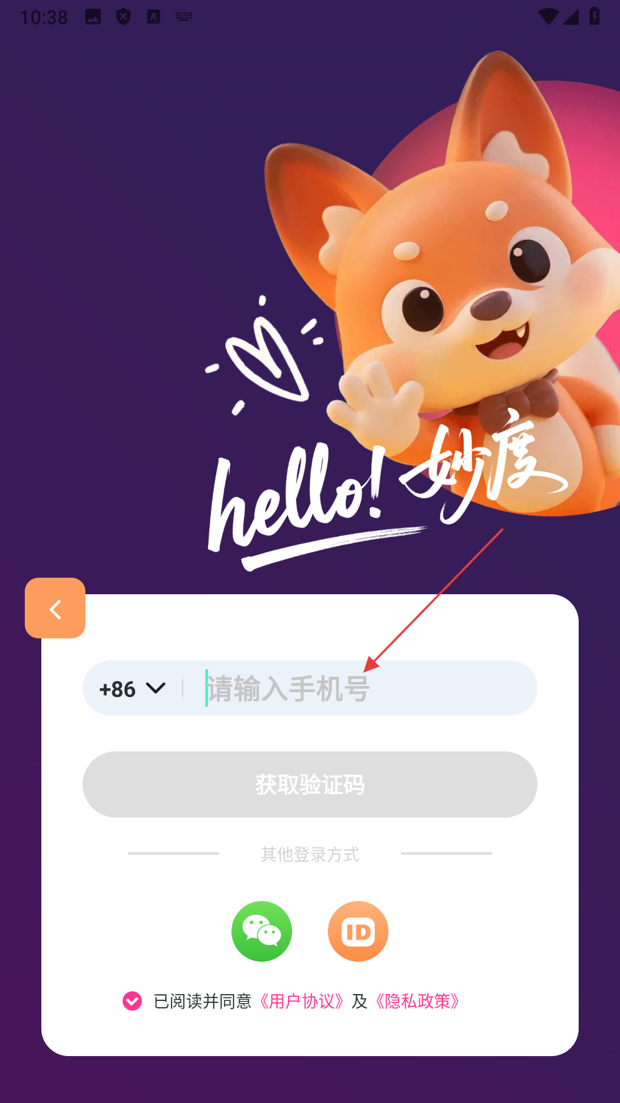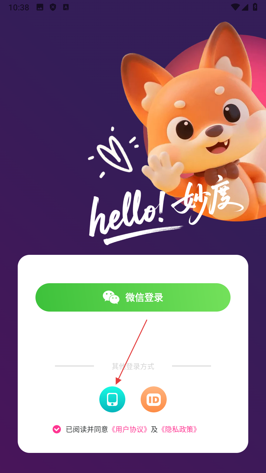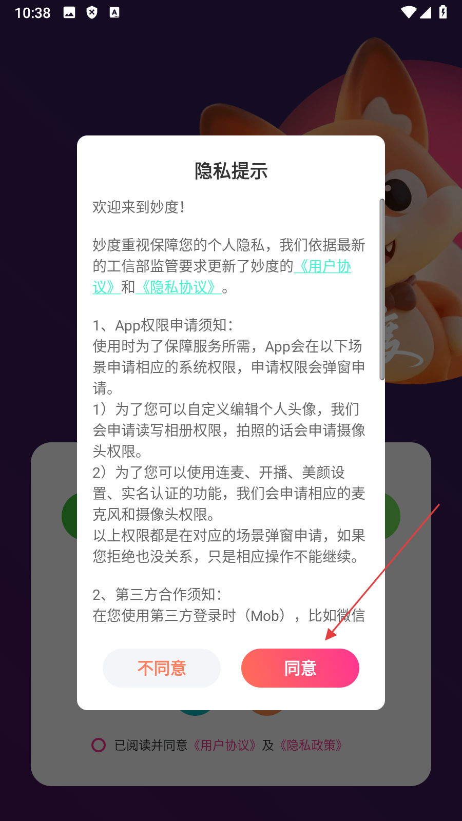 1、在隐私提示弹窗中,点击【同意】,进入登录选择页面。