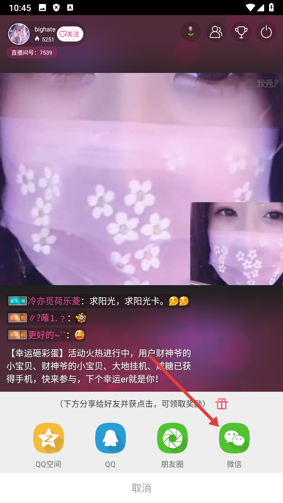 4、在分享选项中,点击【微信】,即可将直播间分享给微信好友。