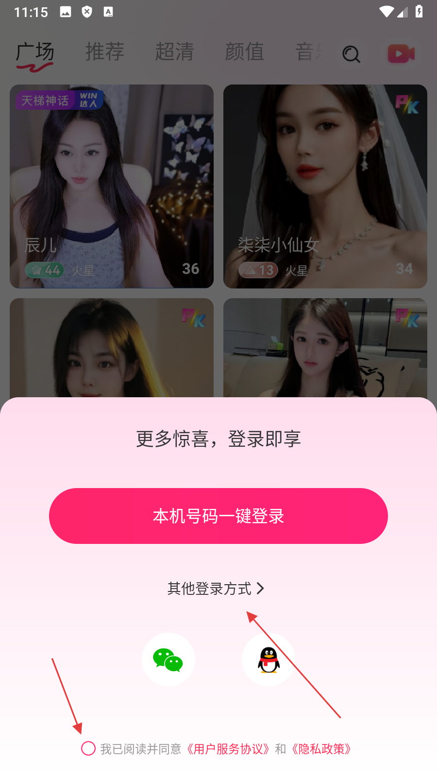 2、在登录提示弹窗中,勾选【同意协议】,点击【其他登录方式】,进入手机号登录页面。