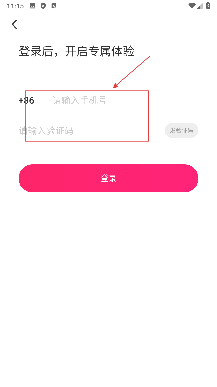3、在手机号登录页面,输入【要登录的手机号码与验证码】,准备登录。