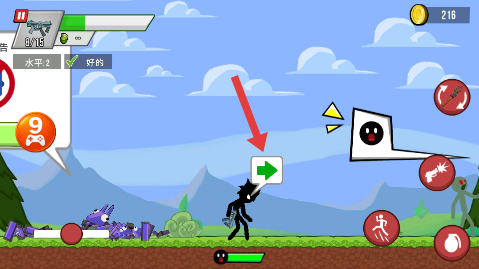 4、跟随绿色箭头指引,推进游戏进程,完成关卡目标。