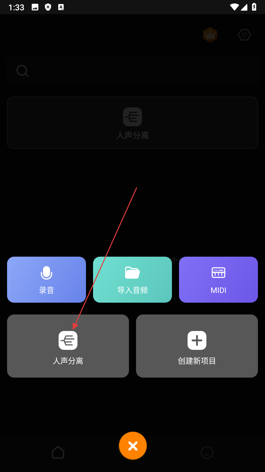 2、在功能选项中,点击【人声分离】,进入文件选择页面。