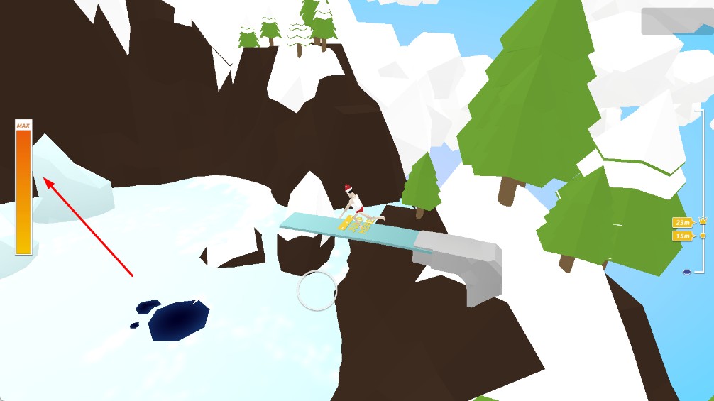 1、基础控制练习:轻触屏幕完成助跑起跳,在飞行过程通过左右滑动调整落点位置,确保准确进入冰洞区。