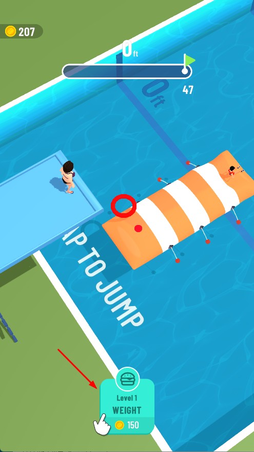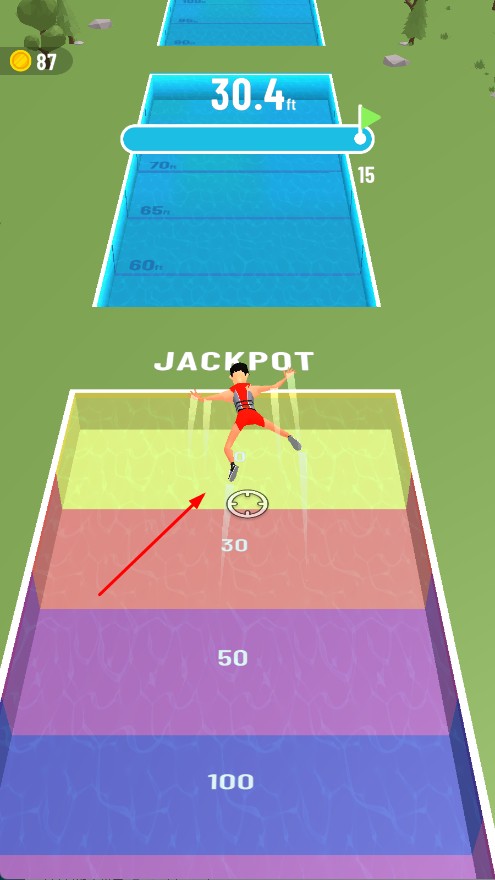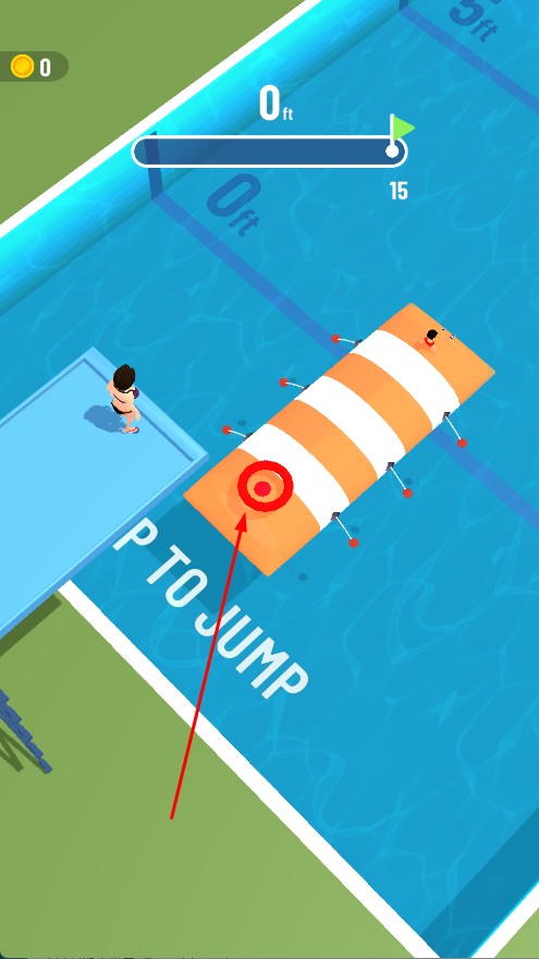 1、在跳板处,点击屏幕指定区域,让角色跳跃。