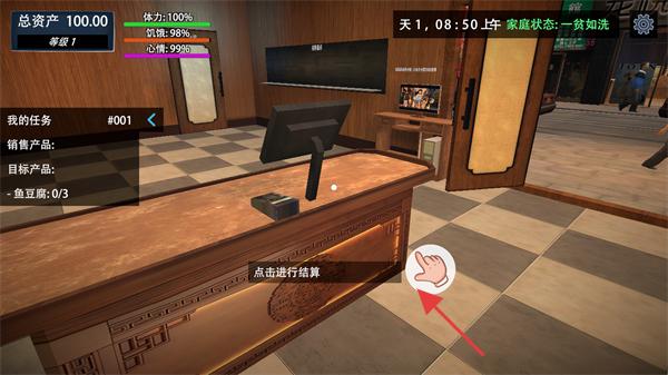 4、在收银处点击进行结算,获取收益,继续经营店铺。