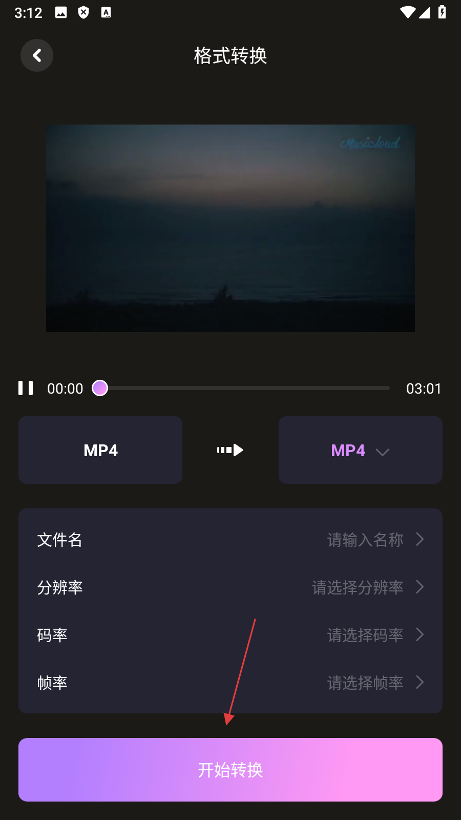 4、在格式转换页面,设置好参数后点击【开始转换】,即可进行视频格式转换。